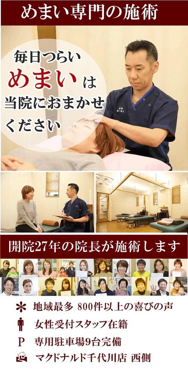 頭痛、めまいで整骨院? 嘘みたいな話ですけど本当です!! あきらめないで一度相談してみて下さい。
