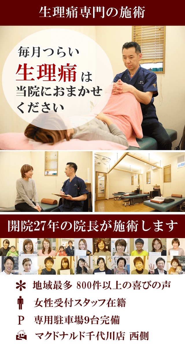 大丈夫ですよ!当院では、いままで生理痛でお悩みの方が来院され改善している事例が数多くあります。