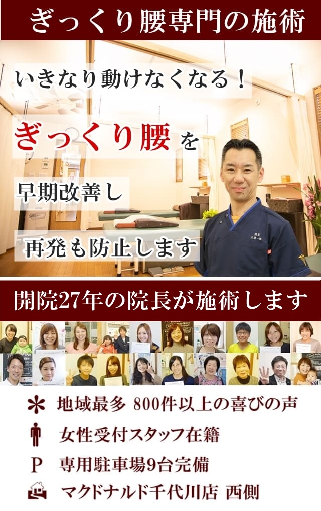 また、最新機器だけでなく身体のバランスを整える事で、繰り返す「ぎっくり腰」の根本原因から治療し再発を防ぎます。